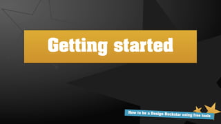 This document discusses how to become a design rockstar using free tools. It begins by explaining the basic roots of design including consistency, space, and positioning. It then introduces some free desktop and web-based design tools that can be used, such as Picasa and Aviary. The document provides lessons on using the tools' libraries, editors, layers, and more. It also lists free resources for photos, fonts, and graphics. Finally, it proposes three design projects to practice the skills and provides ways to connect with the author.
