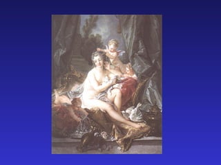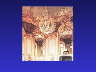 The document discusses Rococo art and costumes from the 18th century. It mentions Rococo artworks by Thomas Gainsborough and William Hogarth such as "Mrs. Peter William Baker" and "Beer Street". The document also references Rococo costumes and their features three separate times.