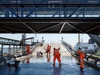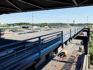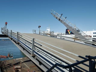 Rødby Harbour connects Rødby, Denmark to Puttgarten, Germany via a ferry service operated by Scandlines. Considered an important transport link, ferries run every 30 minutes, 24 hours a day. Plans were made to replace the ferry service with a bridge or tunnel, though the project has faced delays and environmental concerns. In the meantime, Scandlines refurbished the ferry linkspan area at Rødby Harbour using an anti-skid coating to repair 1200 square meters. The company also upgraded its ferries with hybrid propulsion systems and scrubbers to reduce emissions.
