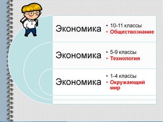 Документ рассматривает важность экономического образования в начальной и средней школе, подчеркивая его значение для всестороннего развития учащихся. Экономика помогает школьникам адаптироваться к социальной жизни, обучая их применять экономические знания на практике и формируя деловые качества. Педагогические подходы, такие как проектное обучение, акцентируют важность вовлечения детей в изучение и понимание экономики через личный опыт и взаимодействие с окружающим миром.