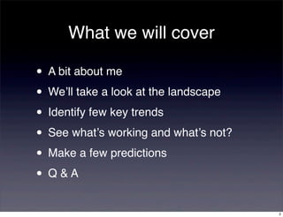 - Predictions include mobile becoming dominant but not the only screen, and ads adding value by solving problems, seamlessly integrating the physical world, and allowing direct fulfill