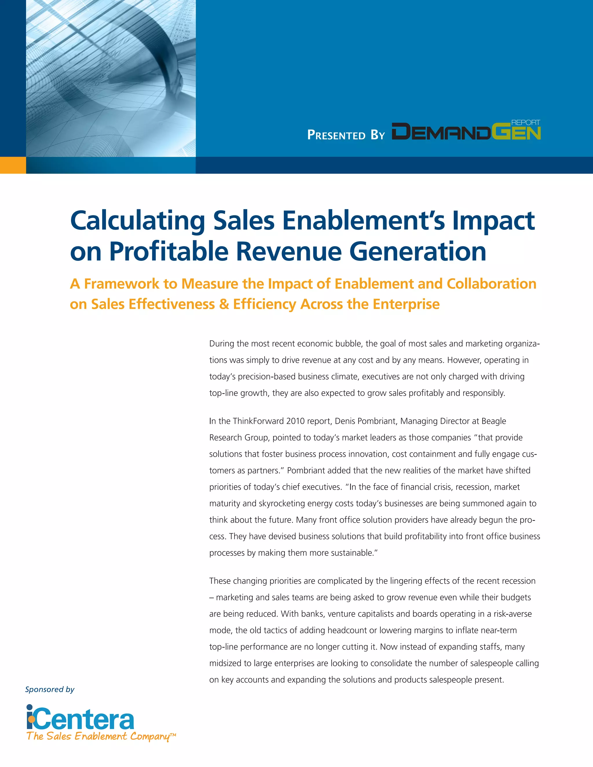 Sales enablement solutions have shown dramatic impact for both sales and marketing departments by increasing efficiency. As buyers have become more risk-averse and seek efficiencies, companies are deploying sales enablement platforms to help sales teams add value and communicate effectively while handling wider product offerings. Case studies demonstrate sales enablement platforms can boost productivity and revenue generation while reducing costs.