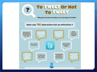 The document discusses the importance of Professional Learning Networks (PLNs) for educators, emphasizing their role in facilitating personalized, collaborative professional development. It highlights various tools and platforms for information aggregation and collaboration, such as social media and blogging, while also addressing the challenges of information overload. Additionally, it offers survival tips for managing PLNs and encourages ongoing learning and networking among educators.