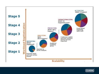 The document outlines the role of analytics in the life of Database Administrators (DBAs), highlighting its importance in decision-making, forecasting, and performance optimization. It details various stages of analytics, techniques for alert tracking and analysis, and tools available for data visualization. Emphasizing the necessity of measuring data to improve performance, the document also explores how proactive monitoring can enhance database management.