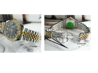 The document describes a Rolex Datejust replica watch for sale on the website www.watchfordream.com. It is available in all sizes with a steel and Everose gold bezel, sapphire crystal, gold dial set with diamonds, 100 meter water resistance, self-winding movement, and Jubilee bracelet. The model number is 179175.