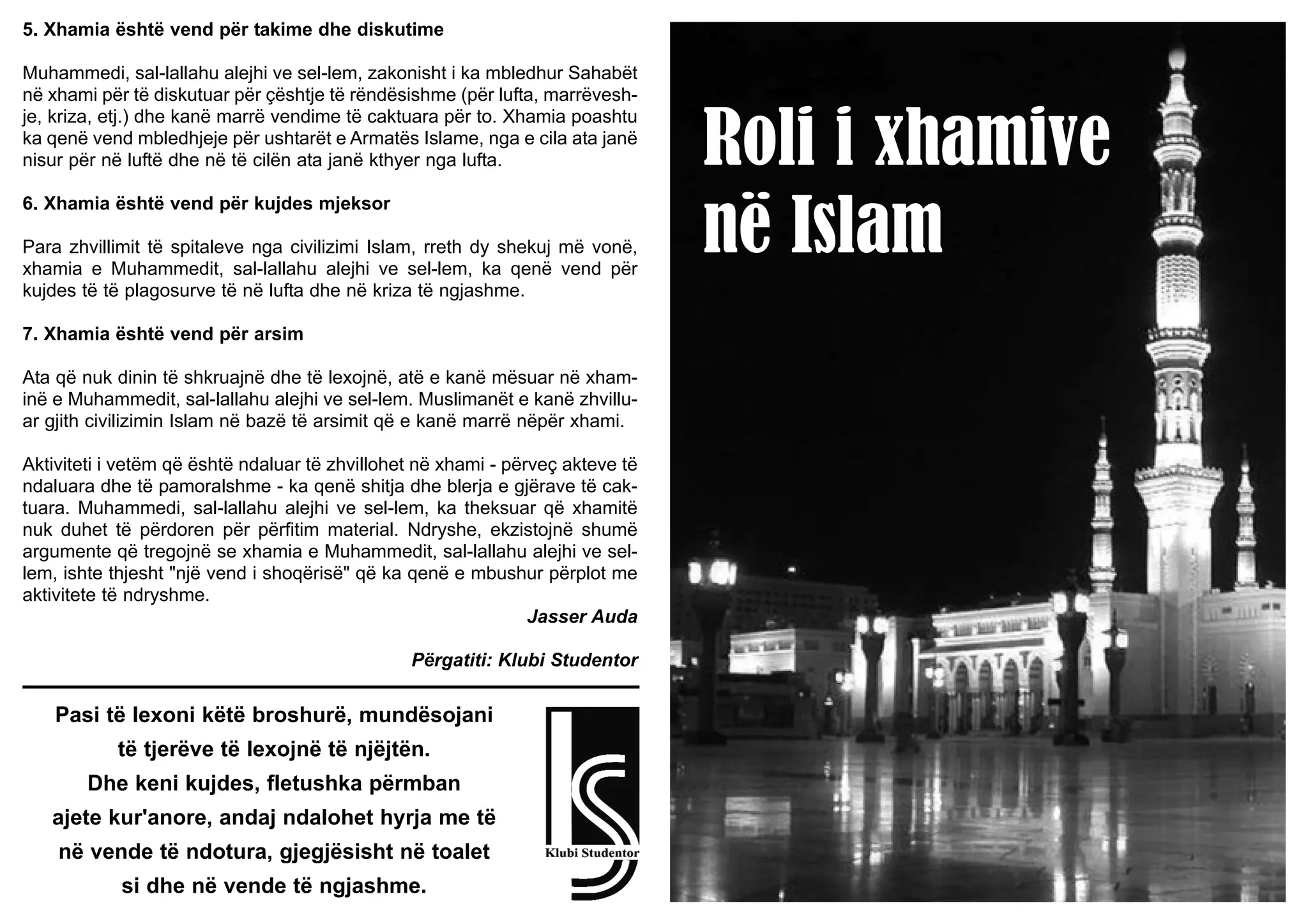 tuara. Muhammedi, sal-lallahu alejhi ve sel-lem, ka theksuar që xhamitë