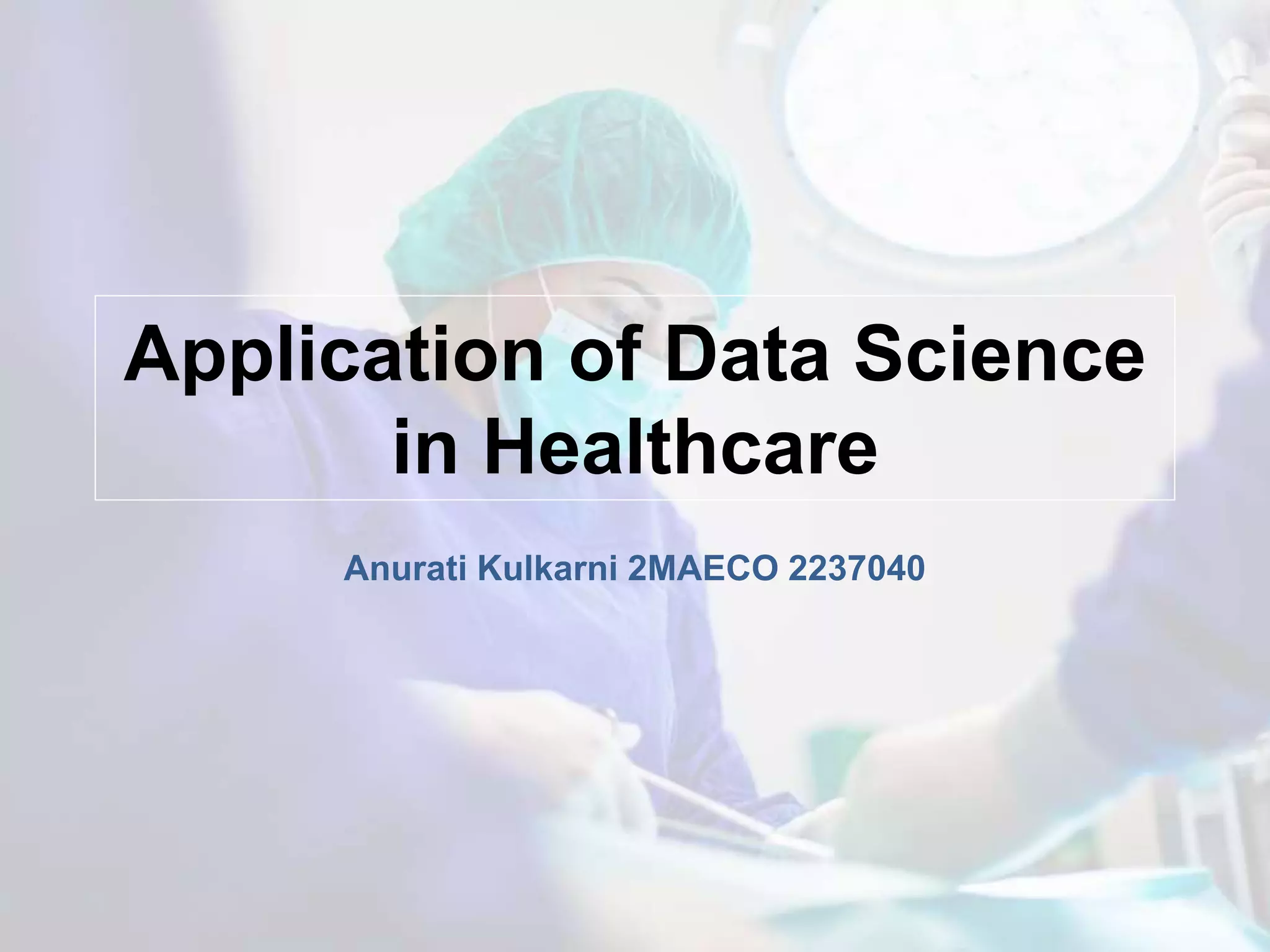 Data science has significantly changed the healthcare industry by enabling more informed decision making, better diagnostics, and predictive analysis. It has helped structure large amounts of medical data and allows doctors to make more educated decisions about patient health. Data science provides the foundation for drug development in the pharmaceutical sector by discovering statistical relationships between patient attributes and compounds. When applied to medical imaging, deep learning can detect small abnormalities that help doctors develop effective treatment plans. While data science holds great potential for improving healthcare, challenges remain around standardizing data and management practices.