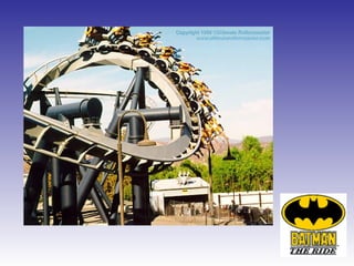 Roller coasters have been a popular attraction at amusement and theme parks for over a century. Roller coasters are often called "scream machines" because just one look at them makes it obvious why they earn this nickname. Roller coasters provide thrilling rides that cause passengers to scream due to fast speeds, steep drops, and dramatic turns.