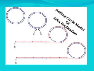 Rolling circle replication is a unidirectional nucleic acid replication process that rapidly synthesizes multiple copies of circular DNA or RNA molecules, primarily utilized in molecular biology and biomedical applications. The process involves a sequence of steps including nicking of circular DNA, elongation of strands, and termination resulting in double-stranded circular DNA and single-stranded linear molecules. This method is exemplified in circular plasmids in bacteria and certain viruses such as herpes and papillomavirus.