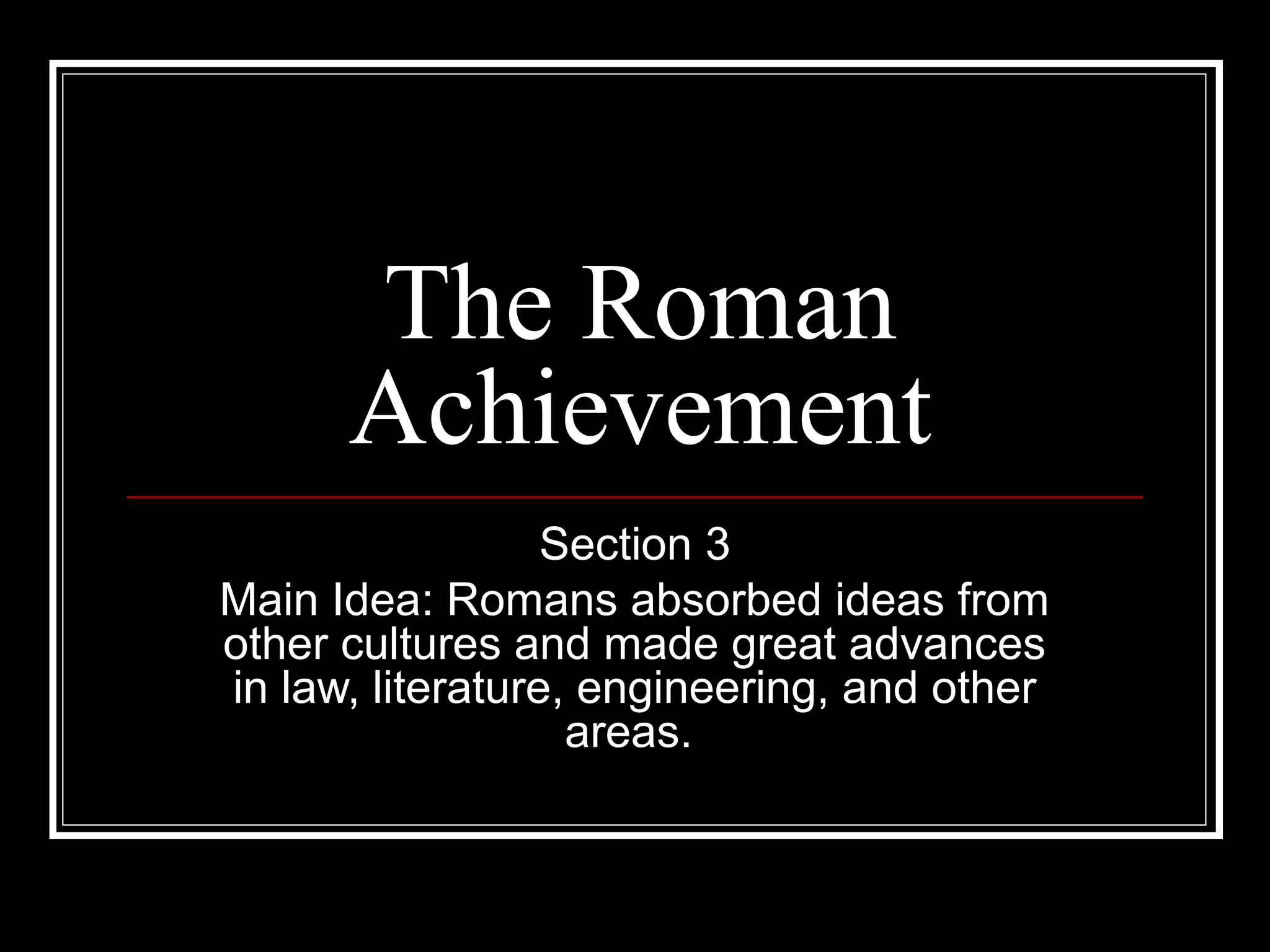 The document summarizes key aspects of Roman civilization and the rise of Christianity. It describes how the Romans absorbed ideas from Greek culture and made advances in areas like law, literature, engineering and architecture. It also explains how Christianity emerged in the Roman Empire, with Jesus spreading a message of spiritual salvation, and how the religion grew despite periods of persecution, before becoming the official religion under Constantine. Finally, it outlines factors in the decline of the Western Roman Empire, including invasions and economic and political problems.
