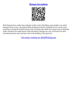 The document outlines the significant contributions of ancient Rome to architecture, engineering, military organization, and religion, highlighting the use of arches, columns, and massive structures that influenced future generations. It discusses the polytheistic beliefs and sacrificial practices integral to Roman society, as well as the impact of military conquests, particularly the Punic Wars, on Rome's expansion and governance. Additionally, it reflects on Rome's lasting legacy in various cultural and civil domains, emphasizing its role as a foundational civilization in world history.