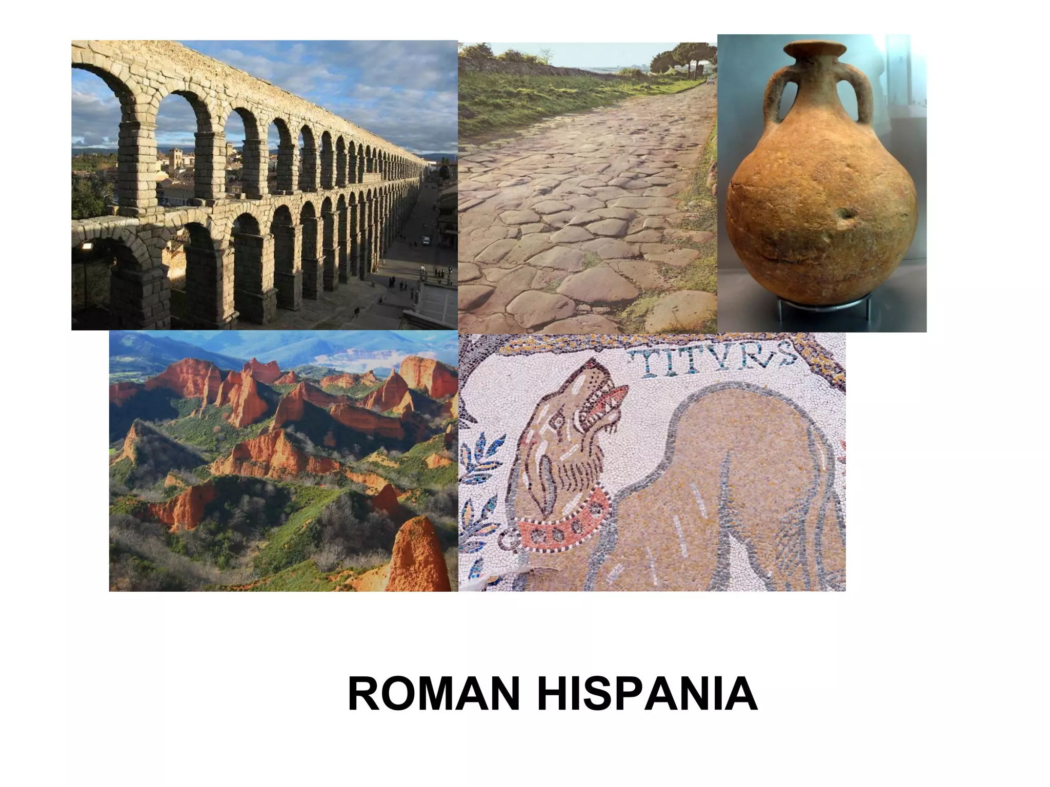 The document summarizes Roman influence and conquest in Hispania (Roman Hispania). It describes how the Romans and Carthaginians initially competed for control of the Iberian Peninsula prior to the Punic Wars. It then outlines the three stages of Roman conquest: 1) Wars against the Carthaginians from 218-197 BC, 2) Wars against the Celtiberians and Lusitanians from 154-133 BC, and 3) Wars against the Astures, Cantabri and Gallaeci from 29-19 BC under Augustus. Finally, it discusses how Romanization spread through Hispania via urbanization, economic integration, adoption of the Latin language and Roman social structures.