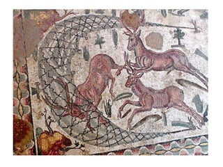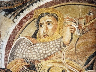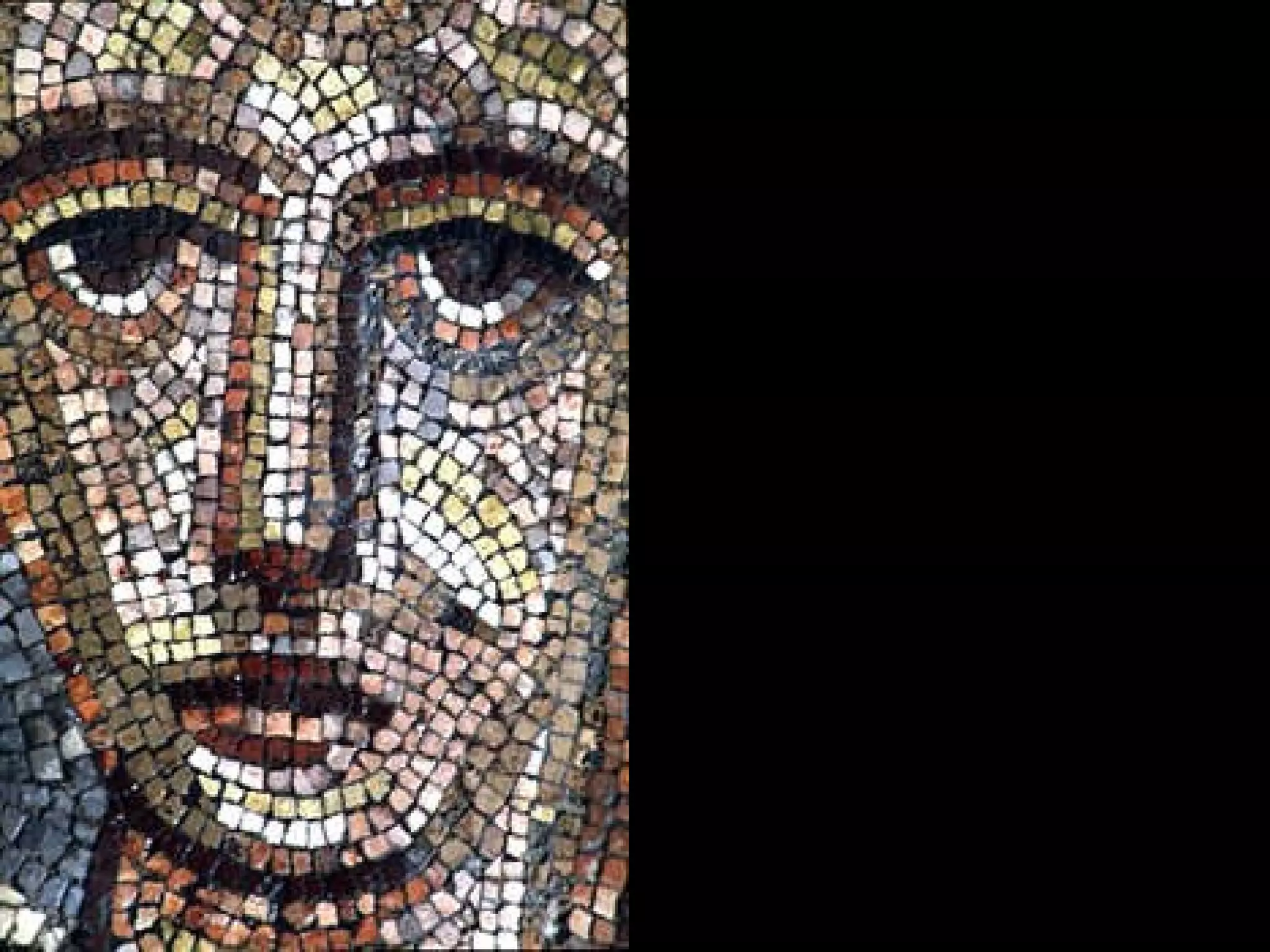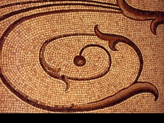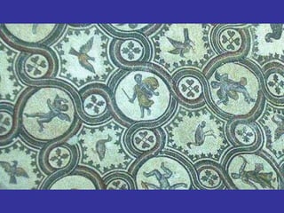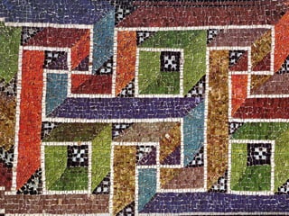 The document explores mosaics, defined as decorative pictures made from small pieces of materials like stone and glass, detailing their history, techniques, and patterns. It discusses various styles such as opus vermiculatum and opus regulatum, and the evolution of mosaics from the Roman Empire to contemporary artists like Antoni Gaudi. Additionally, it highlights the cultural significance of mosaics in depicting historical scenes and musical instruments from ancient Rome.