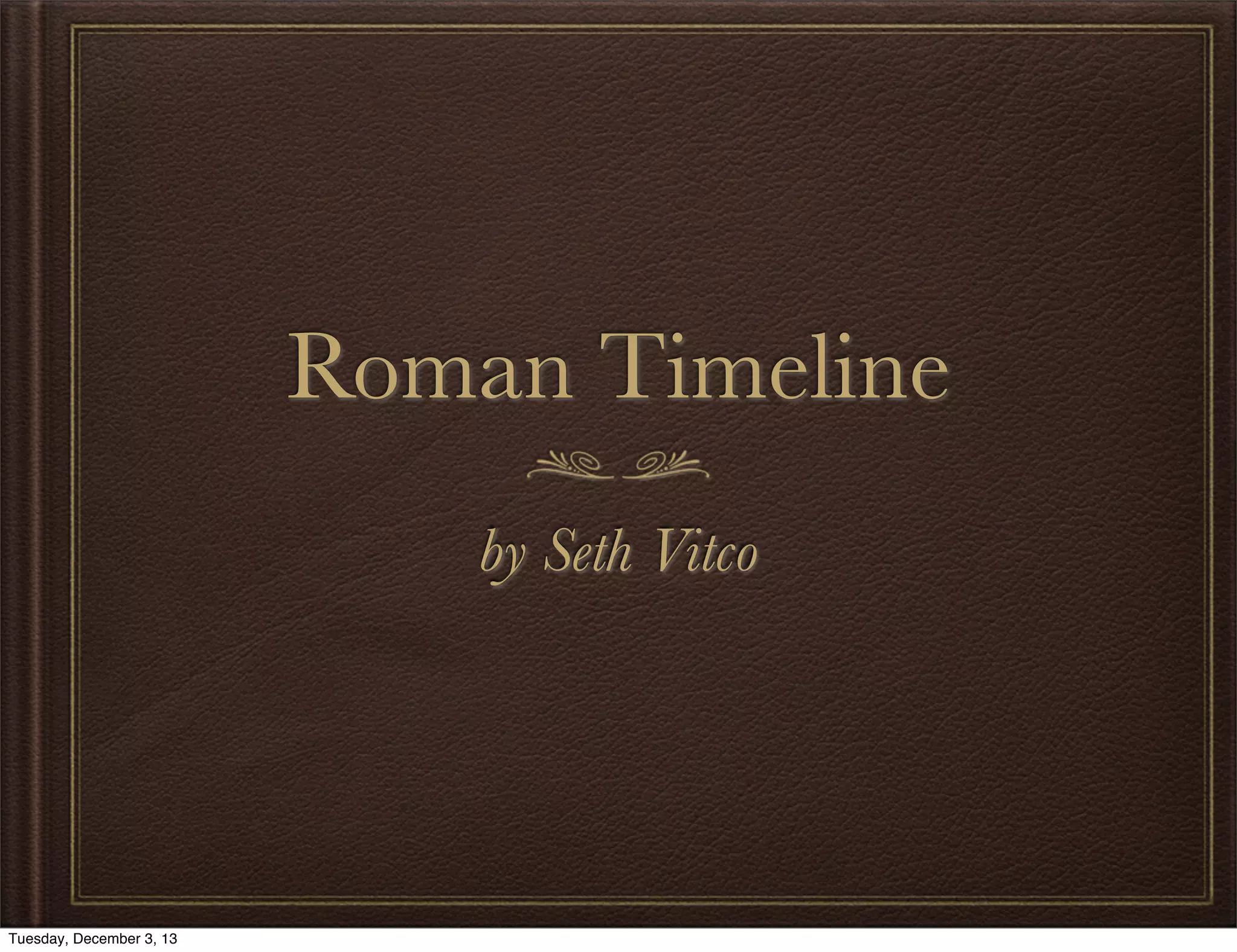 The document provides a timeline of important events in Roman history from its founding in 753 BC by Romulus to the fall of the Eastern Roman Empire in 1453 AD. Some of the key events included the establishment of the Roman Republic in 509 BC after the overthrow of the monarchy, the Punic Wars between Rome and Carthage from 246-146 BC which resulted in Rome destroying Carthage, and the split of the Roman Empire into Western and Eastern halves in 285 AD. The timeline traces the rise and eventual fall of the Roman civilization over more than two millennia.