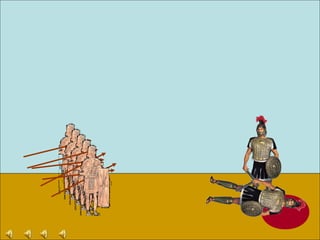 The Roman Empire had a highly advanced military that conquered many countries using superior weapons like the gladius sword, pilum javelin, and scutum shield to strike fear in enemies. Other Roman weapons included the pugio dagger, plumbata lead weight, scorpio bolt-shooting machine, and catapult siege engine. These powerful weapons helped the Roman Empire expand and remain strong for a long period of time.