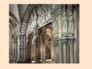 Romanesque art from the 11th to 12th centuries was strongly influenced by Roman architectural styles. Buildings like churches and monasteries featured thick stone walls, small windows, and rounded arches. Sculptures and paintings served to educate the illiterate population about Christianity, using symbolic figures and stories from the Bible. Art was found throughout church interiors and exteriors, especially on portals, altars, and column capitals.