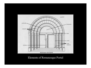 Romanesque architecture features round arches, wall arcades or buttresses, cylindrical apses and chapels, and square, round or polygonal towers. It was the dominant style in Europe from the 10th to 12th centuries, incorporating both classical and Byzantine elements. Romanesque churches were built on a grand scale with long naves, aisles, ambulatories, and radiating chapels to accommodate large numbers of pilgrims. Thick walls and small windows supported heavy stone vaults, while buttresses braced the walls against the outward thrust of the vaults.