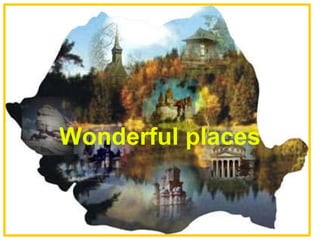 This document provides a list of places to visit in Romania, including landmarks like the Palace of Parliament in Bucharest, Bran Castle, and Peles Castle in Sinaia. It also highlights various natural features such as the Carpathian Mountains, Olt River, Balea Lake, and Retezat Mountains, as well as wildlife like sturgeon in the Danube River and wolves. The document promotes Romania's cultural and historical sites as well as its natural beauty.