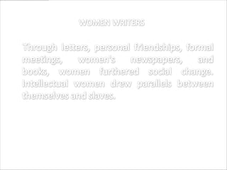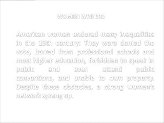 Harriet Beecher Stowe was an American abolitionist and author born in 1811 in Connecticut. She is best known for her novel "Uncle Tom's Cabin", published in 1852, which depicted the harsh reality of slavery and increased public opposition to it in the United States. The novel was a bestseller and had a profound effect on attitudes toward African Americans and slavery prior to the American Civil War. Stowe used her writing to advocate for abolition, women's rights, religious tolerance, and educational reform. She experienced personal tragedy when 3 of her adult children died, including her son Frederick who disappeared without a trace in 1870.