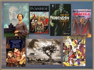 The document discusses the Romantic movement between 1790-1850. Key characteristics included a focus on imagination and intuition over reason, idealism, inspiration, and individuality. Romantics celebrated nature and the supernatural. Major themes were the engaged artist as social critic, the importance of the individual and self-realization through art, and a distrust of reason compared to other historical forces. Notable Romantic works included Frankenstein, Wuthering Heights, and poems by Lord Byron, William Wordsworth, and Samuel Taylor Coleridge.