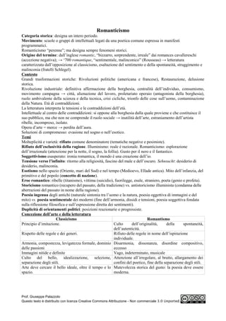 Il romanticismo è un movimento culturale che si oppone al classicismo, esaltando il sentimento, la spontaneità e la soggettività in un contesto di grandi trasformazioni storiche come le rivoluzioni politiche e la rivoluzione industriale. L'arte romantica riflette le contraddizioni dell'epoca e presenta un eroe ribelle e vulnerabile, mentre il romanticismo italiano si distingue per un approccio ottimista e idealista. Il movimento si caratterizza per la ricerca dell'autenticità, il culto dell'originalità e l'abbandono delle regole in favore dell'ispirazione individuale.