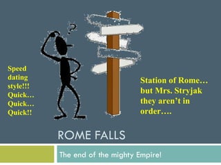 The document discusses the fall of Rome from several perspectives: