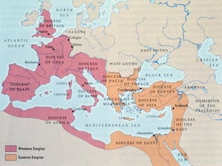 1) The last attempts to save Rome by Theodosius who split the empire in half but it was still difficult to rule.