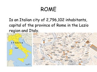 Rome is an Italian city of over 2.7 million people that is the capital of both the province and region of Lazio. It was one of the first great metropolises of humanity with a history spanning three millennia. Rome was the heart of the powerful Roman Empire that once controlled the Mediterranean Basin and much of Europe. Today, Rome remains a living city filled with history, art, culture and tourism where visitors can discover new places and legends every day.