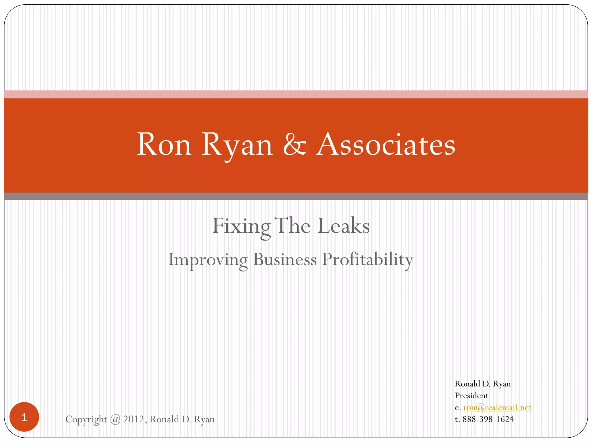 This document discusses fixing leaks in business operations to improve profitability. It outlines how examining where customers are lost throughout the customer journey can help businesses understand how to increase conversion and repeat purchases. The benefits of fixing leaks include deeper customer understanding, higher customer satisfaction, ROI and profits. Common areas where leaks occur include online sales processes, in-store sales, telephone orders, fulfillment and repeat purchases. Fixing leaks requires analyzing customer data and forming a cross-departmental task force to identify issues and implement solutions.