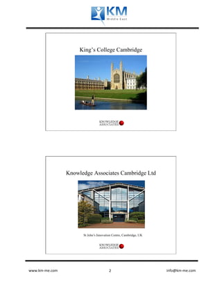 This document discusses a presentation on knowledge management (KM) and its contribution to sustainable economic development in the Middle East. The presentation covers topics such as strategic and operational KM, knowledge-based and knowledge-driven economies, sustainable economic development, and moving toward a knowledge economic theory. It also references frameworks such as knowledge asset management and the four dimensions of knowledge and innovation according to the Asian Productivity Organization.
