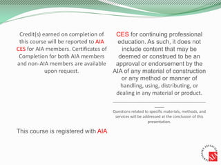 The document details a continuing education course on roof edge performance and standards, specifically covering the ANSI/SPRI ES-1, ANSI/SPRI/FM 4435, and GD-1 standards. Participants will learn essential guidelines for selecting proper roof edge systems to ensure compliance with codes and effective wind resistance. The course aims to enhance understanding of the importance of roof edge systems in preventing roof failures, particularly during severe weather conditions.