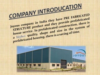 The document discusses the advantages and various forms of prefabricated structures (PFS) in housing, highlighting their affordability, speed of construction, and versatility. It mentions that PFS are standardized and can be produced quickly using quality materials, especially in regions where traditional construction materials are scarce. Additionally, it provides contact information for a company specializing in prefabricated structures in India.