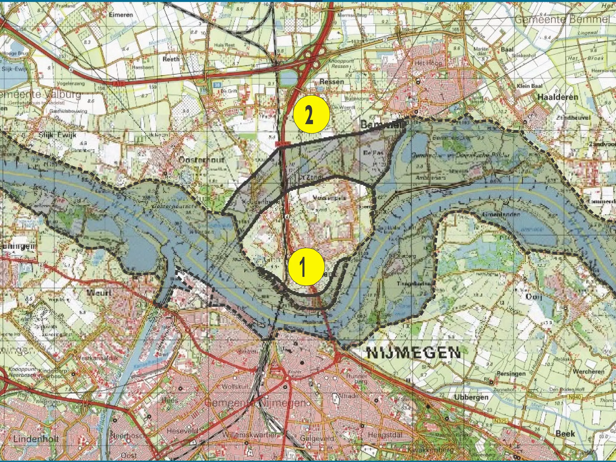 Waal River /Nijmegen Project River bottleneck, channel restriction from 1500m width to 450 m width Options: Ag / undeveloped land available to north Northern river bank land targeted for development Key road / rail / harbor infrastructure 21-10-11