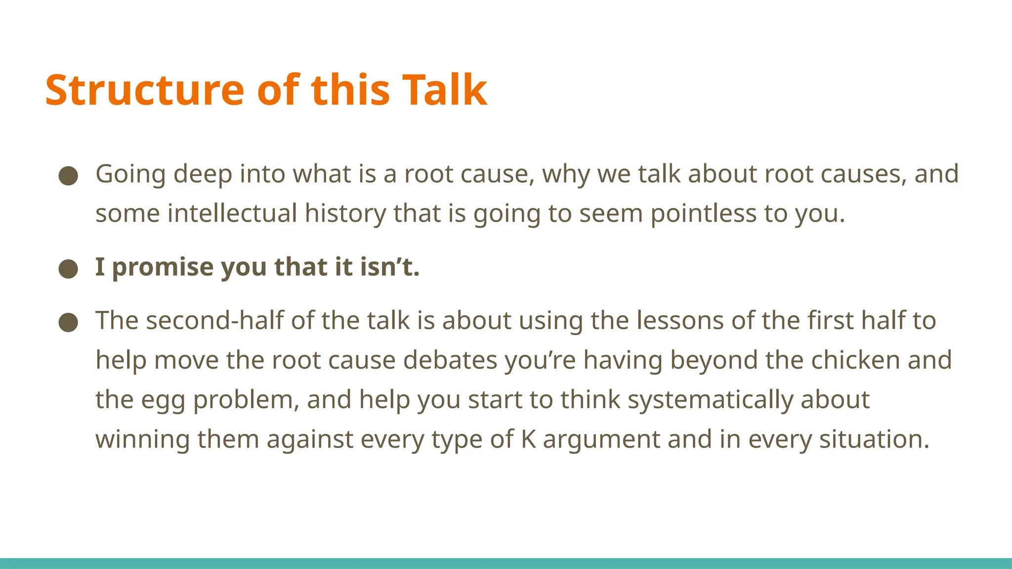 ● Going deep into what is a root cause, why we talk about root causes, and