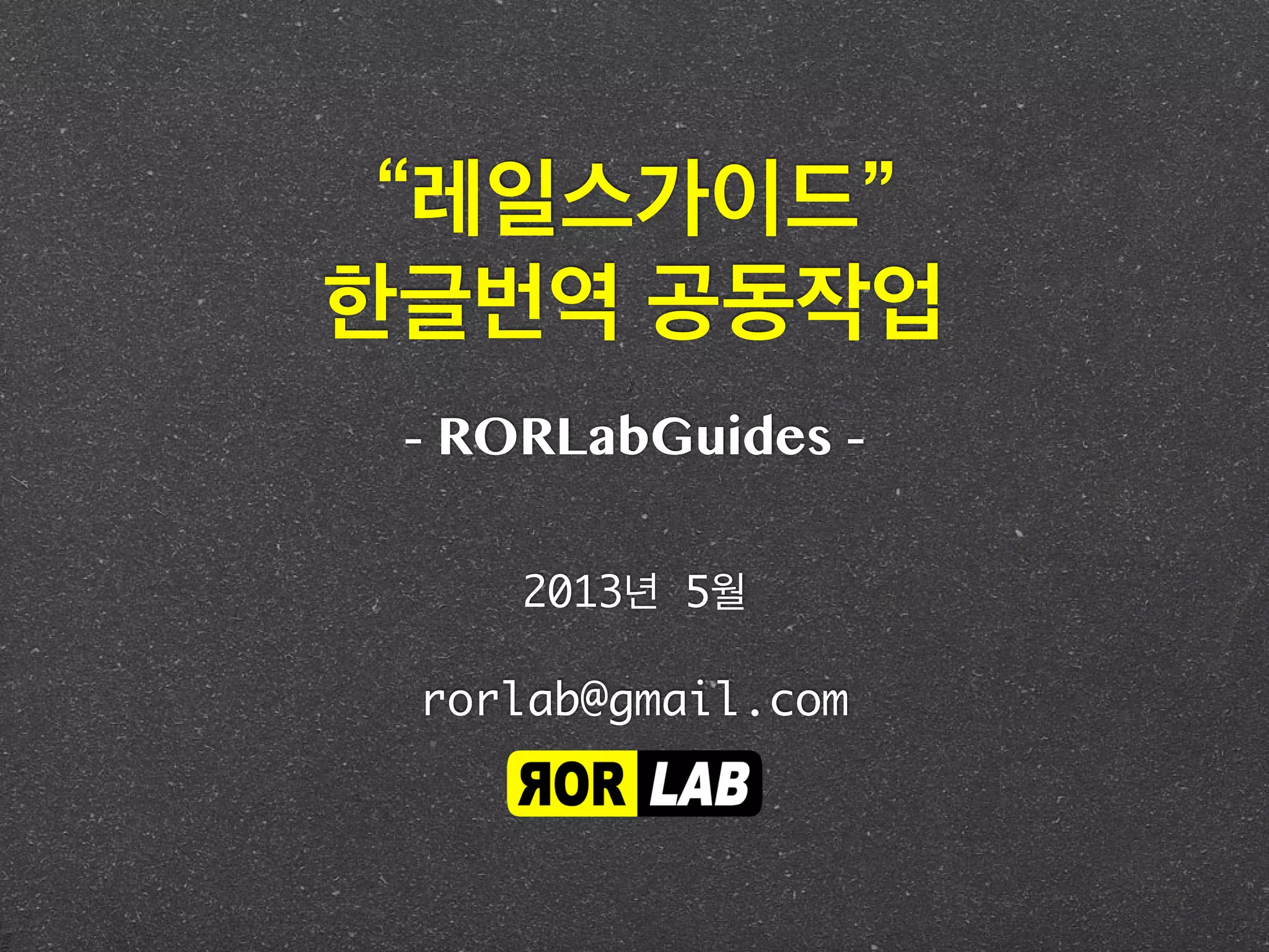 “레일스가이드” 한글번역 공동작업 rorlab@gmail.com 2013년 5월 -