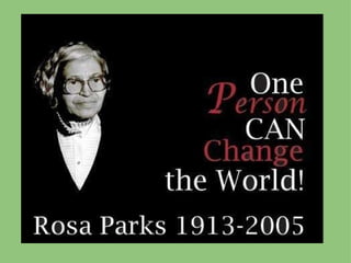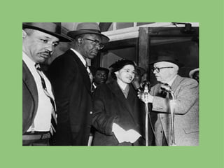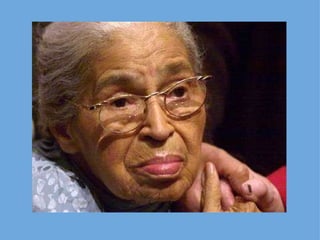 Rosa Parks was an influential civil rights activist known as "the mother of the civil rights movement." On December 1, 1955 in Montgomery, Alabama, Parks refused to give up her seat to a white passenger on a segregated bus, sparking the Montgomery Bus Boycott. The 381-day boycott of the bus system was organized by the NAACP to protest segregation and resulted in a United States Supreme Court ruling that declared Alabama's segregation laws unconstitutional. Parks worked closely with Martin Luther King Jr. and helped change laws and social attitudes through nonviolent protest, risking her safety and continuing her activism even after facing imprisonment for her actions.