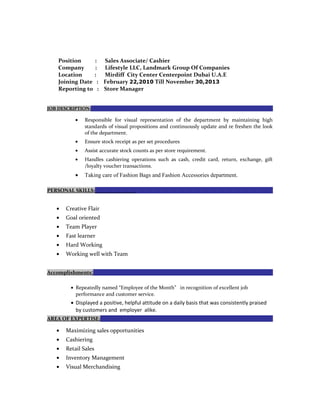 Rosalyn Lazaro Vismonte is seeking a challenging customer service role that allows innovation and growth. She has over 6 years of experience in retail sales and customer service. Her qualifications include strong communication skills, ability to learn tasks quickly, and maintaining a positive attitude with customers. Her professional experience includes roles as a Sales Executive and Sales Associate, where she handled cashier duties, merchandise displays, and ensuring excellent customer service. She is creative, goal-oriented, and has received recognition as Employee of the Month. Her areas of expertise are maximizing sales, inventory management, visual merchandising, and customer service.