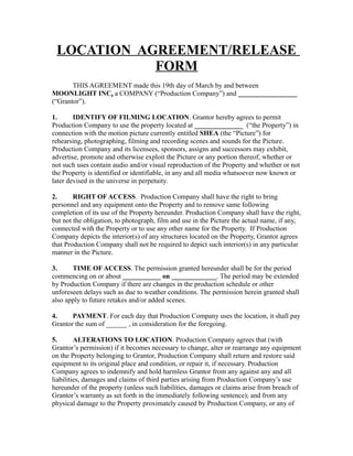 1. Moonlight Inc, a production company, is seeking permission to film at a property located at [ADDRESS] for their motion picture titled "Shea".