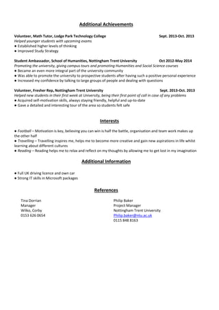 Ross White is a final year physics student at Nottingham Trent University seeking a new challenge in finance. He has a strong academic background as well as work experience in customer service and tutoring. His education includes a 2:1 expected in physics with forensic applications from NTU and A levels in mathematics, physics, and chemistry from Lodge Park Technology College. For work experience, he has four years of customer service at Wilko and ongoing private tutoring in mathematics and physics. He is looking to develop his existing skills and build a long, successful career in finance.