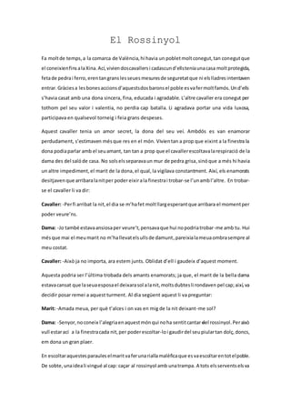 Dama: -Senyor,noconeix l’alegriaenaquestmónqui noha sentitcantar del rossinyol.Peraixò