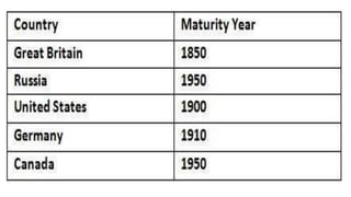 5. Age of mass consumption where the economy focuses on mass production for consumers.