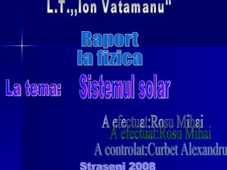 Sistemul solar s-a format acum 4.6 miliarde de ani dintr-un nor mare de gaz și pulberi, iar Soarele reprezintă 99.9% din masa totală a acestuia. Planetele, inclusiv Pământul, orbitează în jurul Soarelui, fiecare având caracteristici distincte, cum ar fi atmosfera și compoziția. Universul continuă să se extindă, iar viitorul său depinde de cantitatea de materie din el.