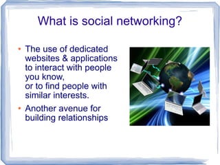 The document discusses the use of social networking sites like Facebook for Rotary clubs and districts. It provides statistics on social media usage and outlines strategies for clubs and districts to create Facebook pages and groups to share information, events and connect with members and potential members. The document also addresses privacy concerns and tips for personal and organizational use of social media for Rotary purposes.