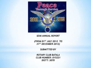 Rotary Club Batala held various service activities from July 1st to December 31st 2012 including: