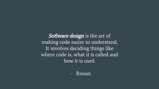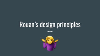 The document discusses Rouan's software design principles: