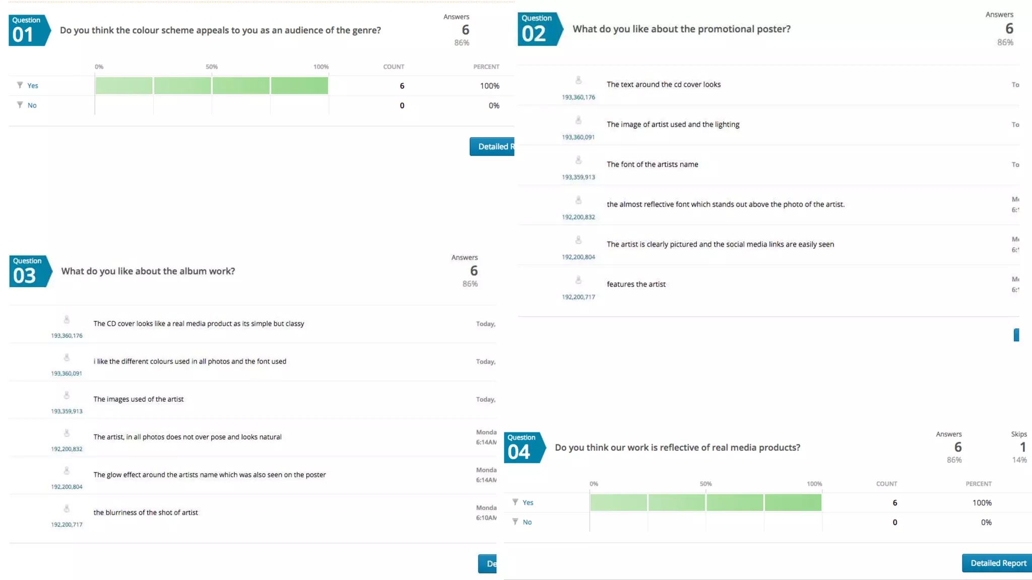 We received feedback that the inside and CD cover of our digital packaging needs improvement. To make the inside more appealing, we will add professional photos to fill the blank space. We will also change the image and font on the CD cover to create coherence across the products. While the overall product was seen as professional, we will modify the font on the CD and some minor elements based on the feedback to further appeal to our target audience.