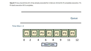 Round Robin is a preemptive scheduling algorithm where each process is allocated an equal time slot or time quantum to execute before being preempted. It is designed for time-sharing to ensure all processes are given a fair share of CPU time without starvation. The process is added to the back of the ready queue when its time slice expires. It provides low response time on average but increased context switching overhead compared to non-preemptive algorithms. The time quantum value impacts both processor utilization and response time.