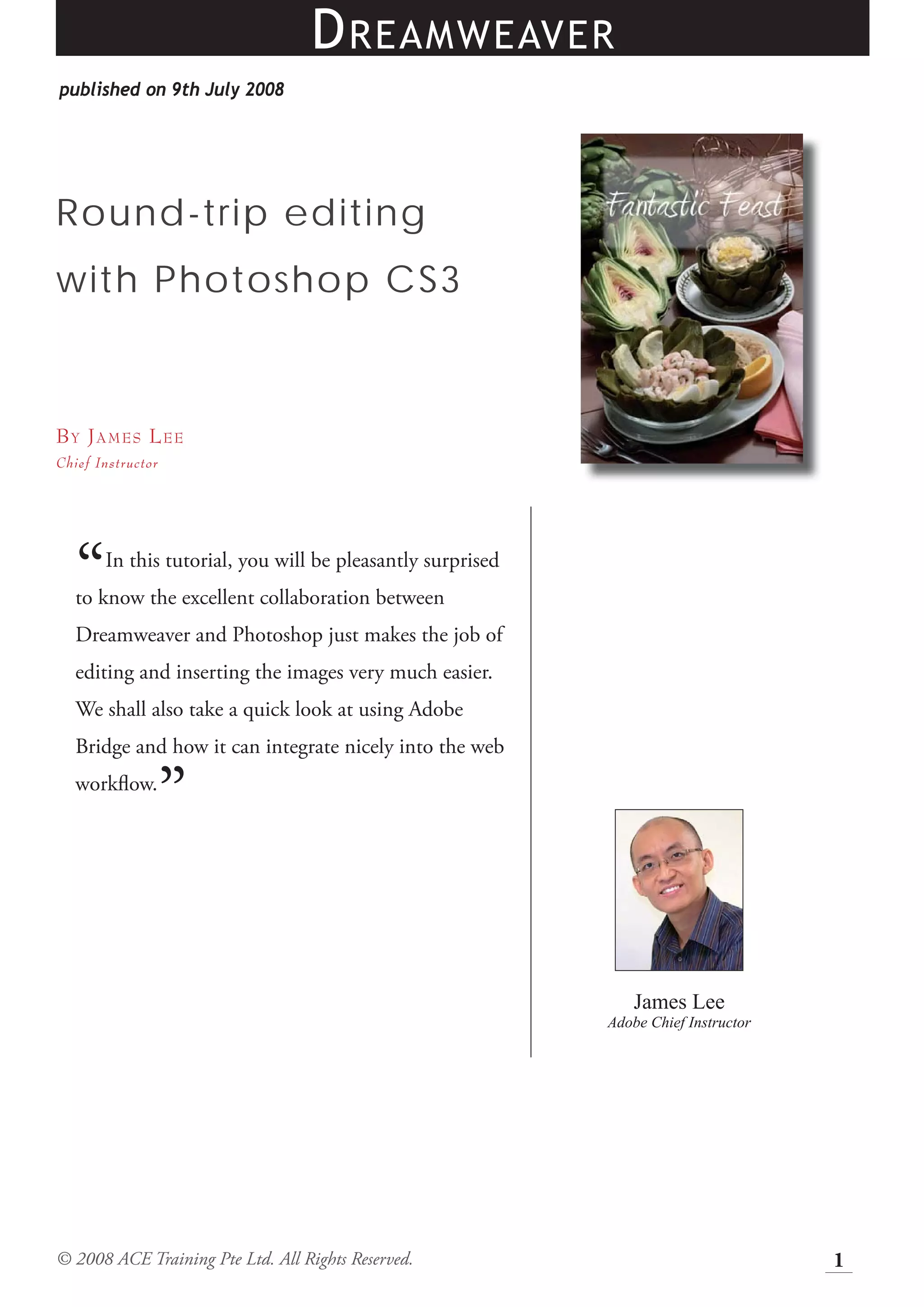 3) Edit inserted images by selecting in Dreamweaver and choosing "Edit in Photoshop." Saved changes are automatically updated back in Dreamweaver.