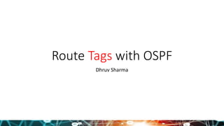 The document explains the use of route tags in OSPF to prevent routing loops during redistribution between different routing protocols, such as OSPF and RIP. It details the configuration of route maps to manage tags effectively and the verification process to ensure routes are handled correctly without being re-distributed. Additionally, it notes limitations regarding route tagging with BGP and RIP version 1.