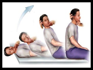 The document discusses routine clinical tests for assessing vestibular function, focusing on nystagmus, its types, and grading intensity. It details various tests including Frenzel's glasses, Romberg's test, and the Dix-Hallpike maneuver, providing procedures and interpretations for conditions like Meniere's disease and acoustic neuroma. It also outlines techniques such as caloric tests and Epley's maneuver for diagnosing and managing vestibular disorders.